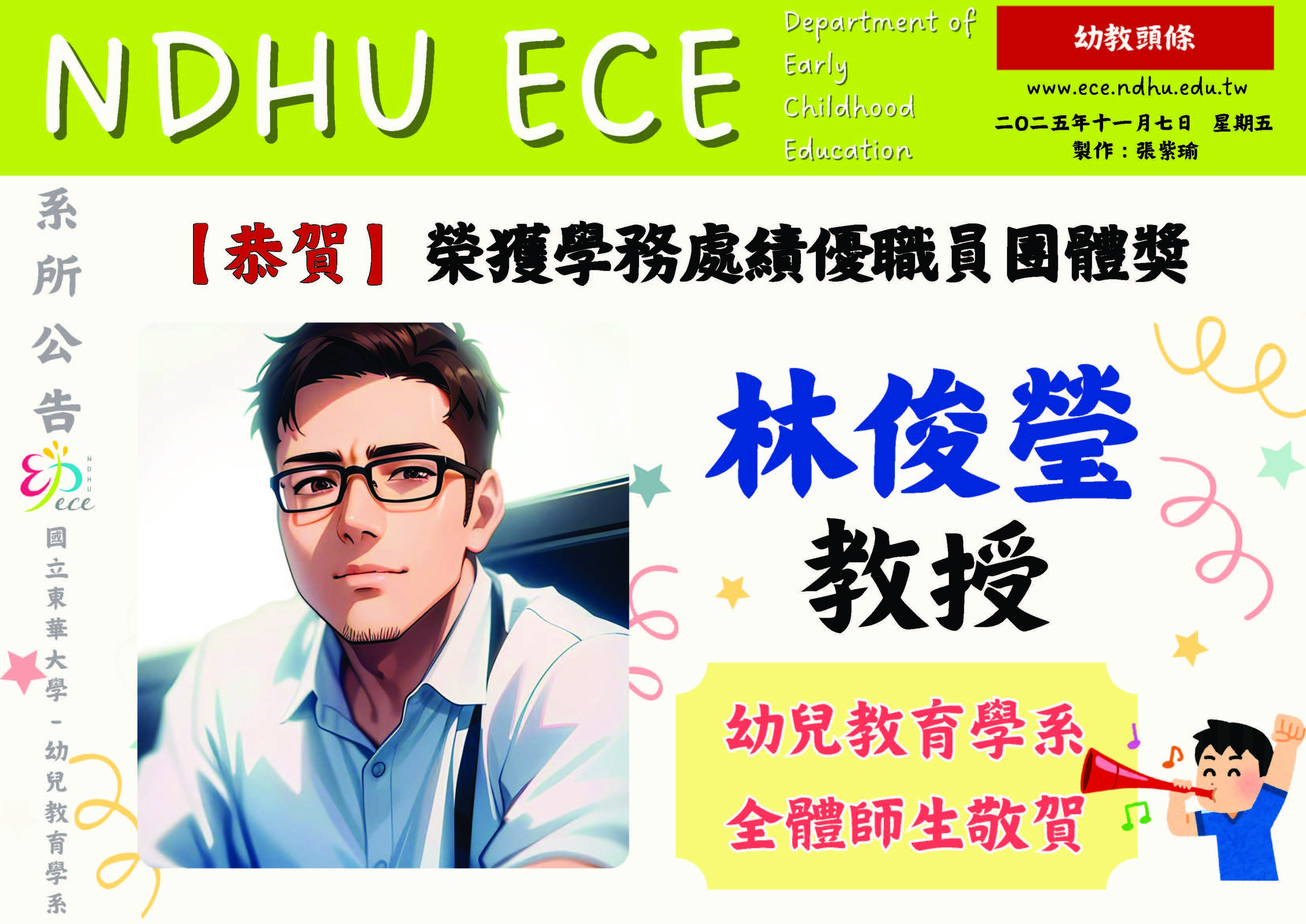【恭賀】林俊瑩教授榮獲學務處績優職員團體獎