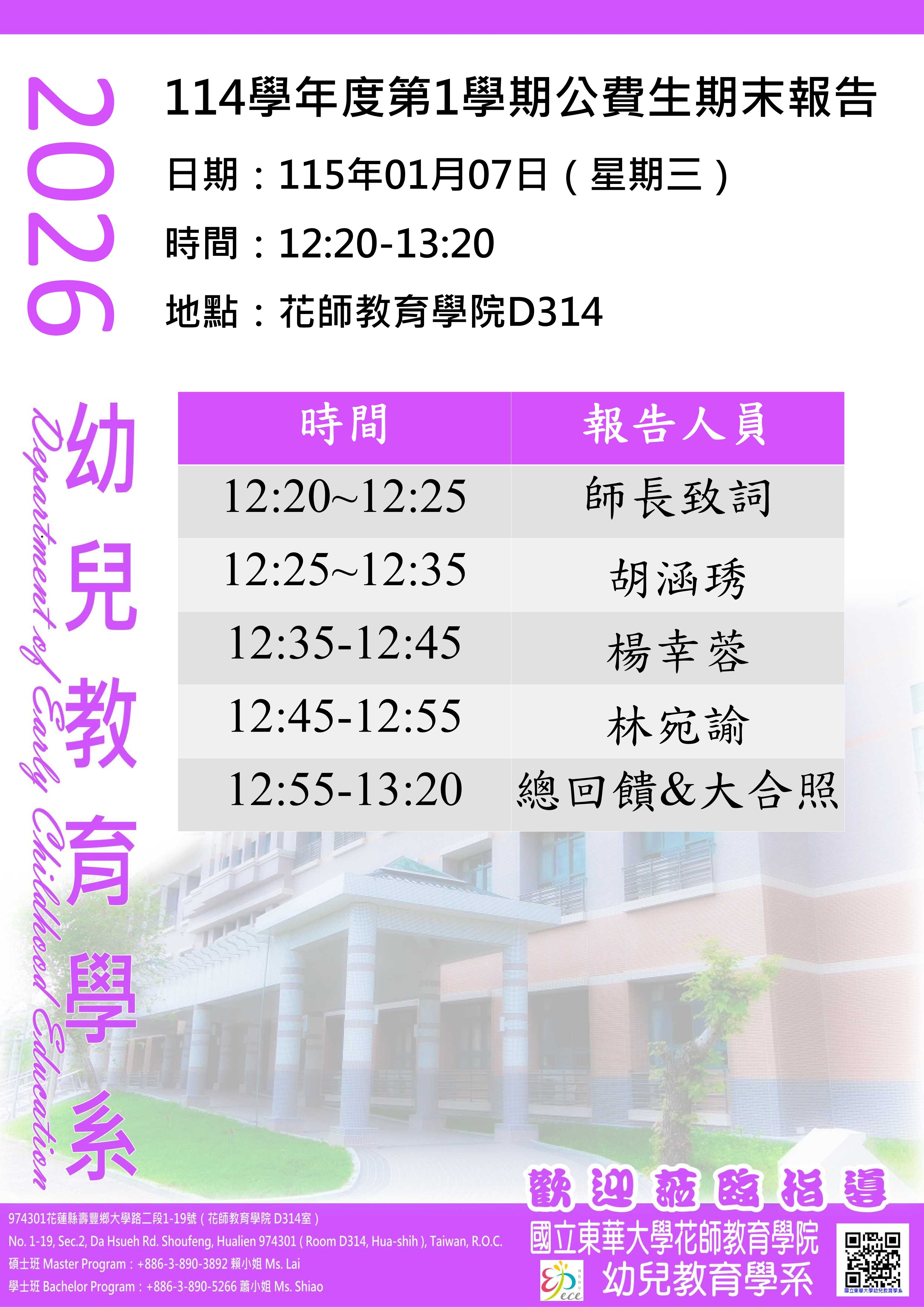 【公費生】114學年度第1學期公費生輔導會議暨期末報告1150107